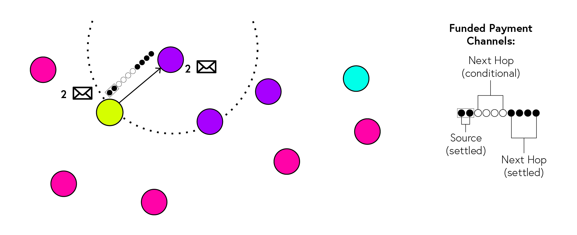 One of the most significant changes Lot49 makes over the existing Lightning payment protocol is to not use a source-routed onion based system to route payments. This also means nodes do not gossip about the global topology of the network in the way Lightning nodes do now. Instead we are designing Lot49 to use a gradient routing approach where nodes only need to be aware of routes in their local neighborhood. This works in a similar way to how computers on the internet route traffic. Your local computer does not need to precompute the entire route to deliver a packet to google.com, but only needs to know that the ‘next hop’ to reach google.com is through your local router. The same process repeats at each hop until your data reaches one of the Google servers. This simplifies the process of delivering data and significantly reduces the amount of routing information that must be exchanged between nodes.